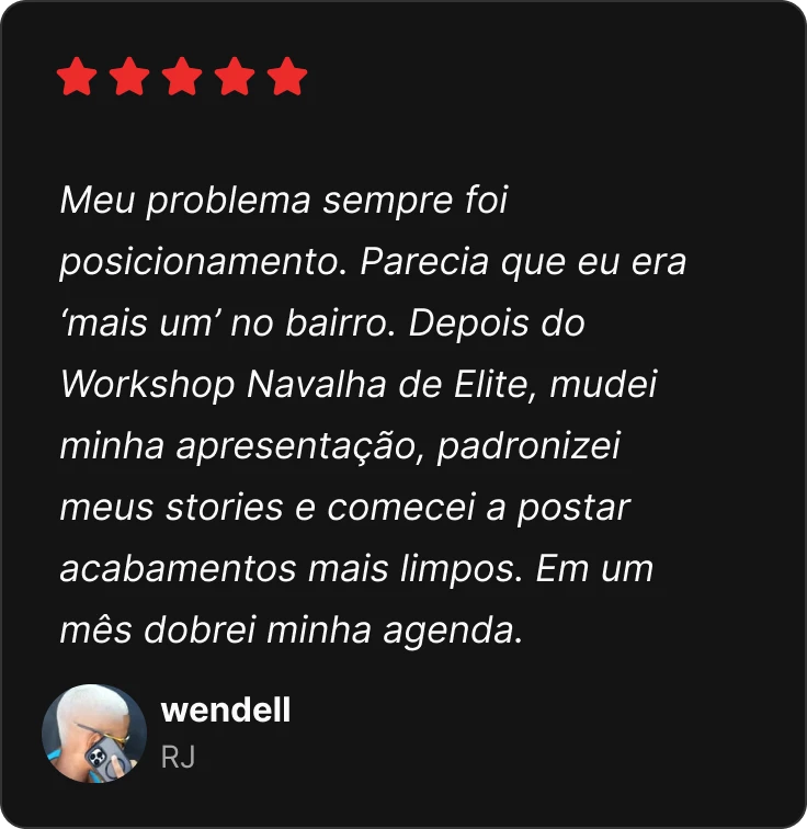 Foi por isso que nasceu o Workshop Navalha de Elite — o atalho pra barbeiros que querem reconhecimento, confiança e agenda cheia.