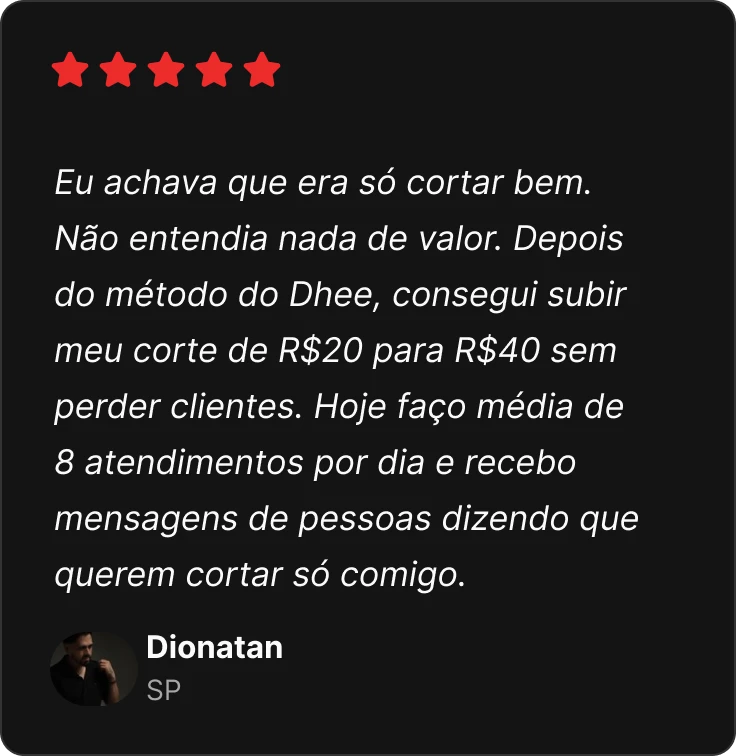 Aprenda com Dhee Corts o sistema em 3 pilares que transforma qualquer barbearia em uma verdadeira máquina de clientes para ser reconhecido, valorizado e finalmente cobrar o que você merece.